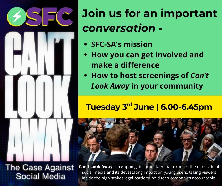 Venue of your choiceCan't Look Away Can't Look Away is a gripping documentary that exposes the dark side of social media and its devastating impact on young users. It is both a wake-up call and a call to action. We're excited to bring this powerful film to your community and spark meaningful conversations around digital wellbeing
